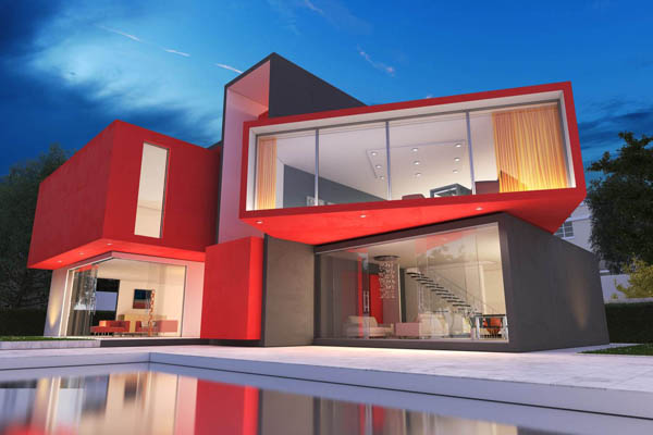 Màu đỏ cũng là một trong những màu sơn kén khách hàng, đa số các thiết kế đều sử dụng màu đỏ làm phụ đạo, ít ai sử dụng màu đỏ tươi làm màu chủ đạo. Tuy nhiên, hãy nhìn vào thiết kế trên, chắc chắn bạn sẽ bị cám dỗ bởi gam màu quyền lực này. Màu đỏ thường chỉ hợp với thiết kế cổ điển châu âu hoặc nhà khối hiện đại.